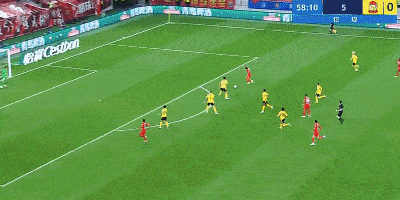 第43分钟,加布里埃尔头球攻门,李昊飞身扑出横梁。