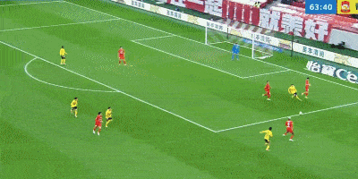 第34分钟,雷德森小禁区内潇洒倒钩射门,角度过正被颜骏凌没收。